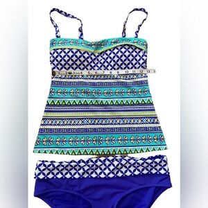 • Multicolor printed tankini (blue, turquoise, green, white)