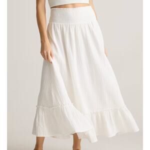 NWT Quince Women's 100% Organic Cotton Gauze Smocked Maxi Skirt White Size XS