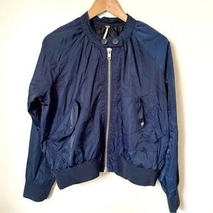 Free People Midnight Satin Bomber Jacket Navy Blue Medium