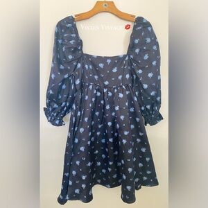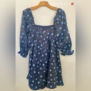 STORIA FLORAL PUFF SLEEVE BABYDOLL DRESS IN NAVY