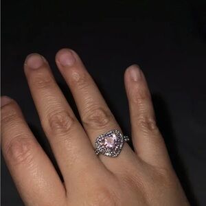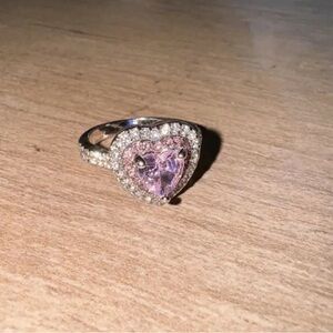 🆕 Beautiful Pink Moissanite and Silver Heart Crystal Ring - SIZE 7