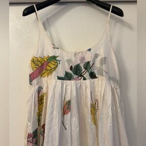 Injiri Rasa 27 White Floral Silk Slip Midi Dress Size Medium Bohemian Casual