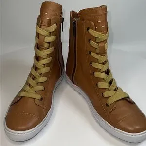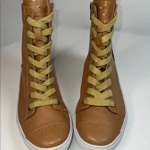 These are the 💛NWT WOMENS KELSI DAGGER BROOKLYN LACE UP LEATHER HIGH TOP BOOTS SIZE 8.5. Tan Leather upper. White runner soles. Lace up design. Super comfortable and stylish.