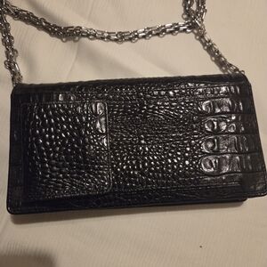Brigbton/VT/Elegant Black Crocodile-Embossed Chain Bag.
