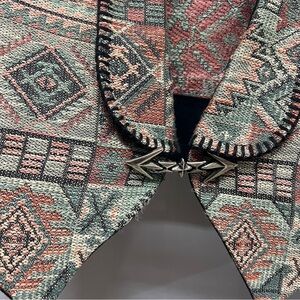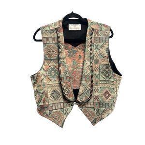 Vintage Longhorn Niver Western Vest Embroidered Tapestry Earthy Geometric XL
