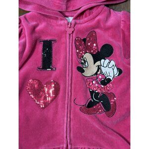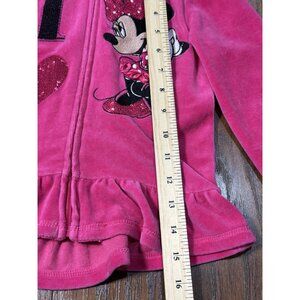 Disney Minnie Mouse Pink Velour Hoodie Jacket 3T Sequins & Ruffle Hem For Girls