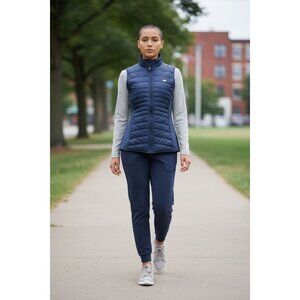 This Magnolia Lane quilted vest is designed for women who value both functionality and elegance. Sized medium, it features a zip front design and is crafted from lightweight polyester, ensuring breathability and ease of wear. The navy blue hue coupled with a sleeveless cut makes it a versatile layering piece for transitional weather.