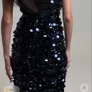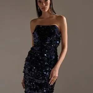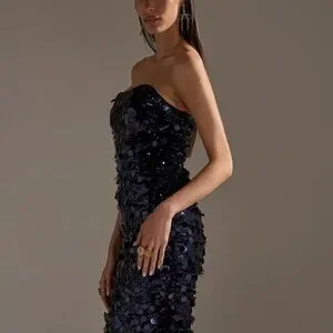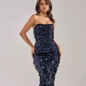 Shine at any event with this elegant strapless sequin dress. The blue sequins create a stunning look perfect for evening occasions. The dress is STUNNING!!!