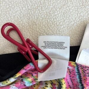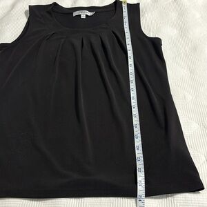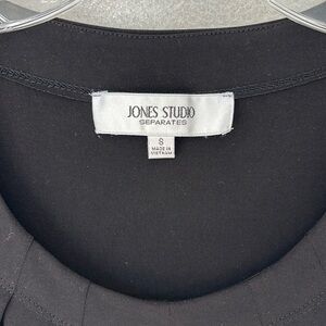 This listing is for 2 Jones Studio Separates sleeveless shells with pleated fronts. The pink print has the label removed, but has the same garment care labels as the black one.