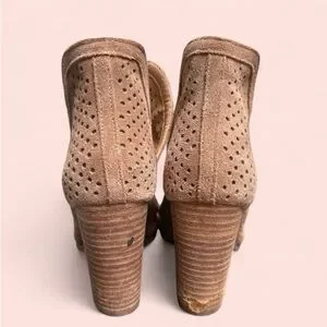 Women’s LUCKY BRAND Larise Taupe Suede Leather Ankle Booties Laser Cut US 5.5