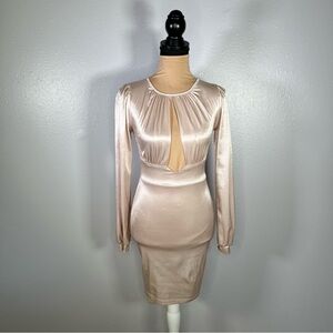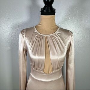 Lurelly Champagne sheen keyhole cut out longsleeve mini dress XS holiday NYE