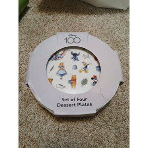 Set Of 4 Disney 100 Ceramic Dessert Plates (Lunch, Salad) 8" New In Package