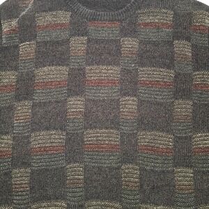 Vintage 90s Brown Geometric Knit Sweater Mens Retro Grandpa Pullover L/XL
