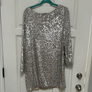 Shine in this elegant silver sequin dress, perfect for any special occasion. Worn twice and in amazing shape. Absolutely no snags or tears on any of the sequences.