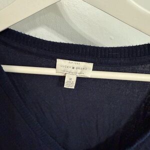 Chic deep blue V-neck sweater. Soft texture. Ideal for any season.