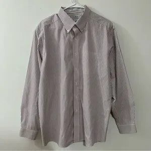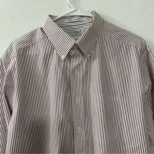 L.L. Bean Men’s Long Sleeve button down shirt Burgundy White Stripes Sz 16 - 35