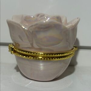 Mary Kay iridescent pearl luster pink rose hinged ceramic 90’s trinket box