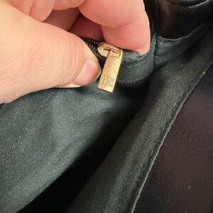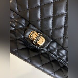 Chic black quilted design. Gold chain strap adds elegance. Perfect for any occasion. Lightly used. Only issue is the strap as seen on the last photo has begun to separate. Large size 14”W x 10”H x 8”D