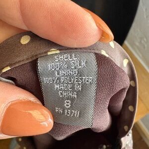 Kate Hill Brown Polka Dot 100% Silk Skirt Straight Ruffle Bottom Sz 8 preloved with out any flaws or defects.