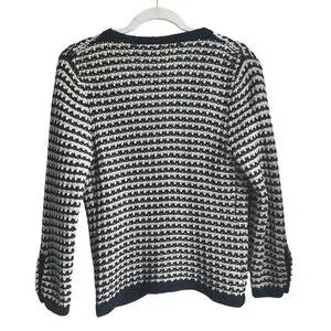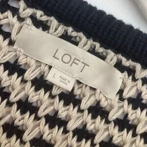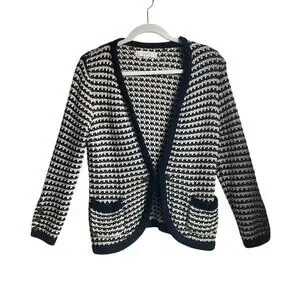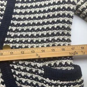 Ann Taylor Loft Medium Navy Cream Open Front Cardigan Chunky Sweater