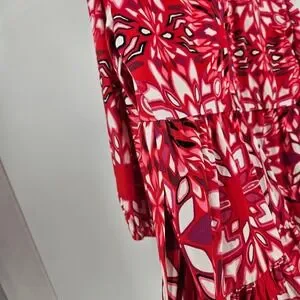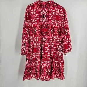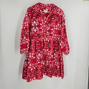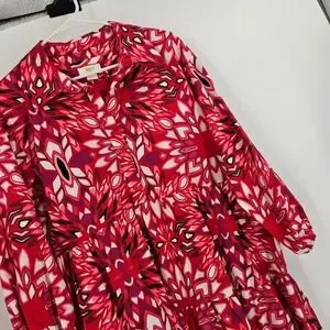 Maeve Anthropologie Bettina Mini Shirt Dress Red Floral Tiered Button Down Sz L