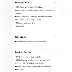 This is so comfortable with the buttery soft powervita fabric. It has side pockets and wide legs. Perfect to pack for any travel outing or wear to school. New in excellent condition. Please see last outfit added details!