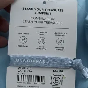 NWT Athleta Girl Stash Your Treasures Dayflower Blue Jumpsuit Size XXL/16.