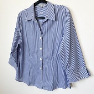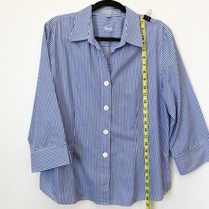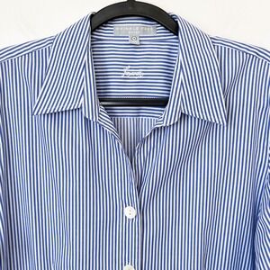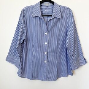 Foxcroft Wrinkle Free Fitted Button Up Shirt Blue White Stripe Womens 18
