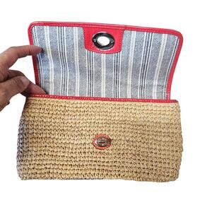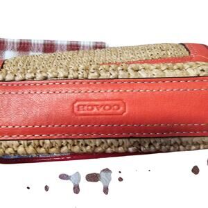 Coach Straw Rafia Flap Clutch Wristlet Natural/Tangerine