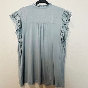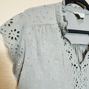Flower & Feather | 2XL | Light Sage Green Eyelet Short‑Sleeve Top