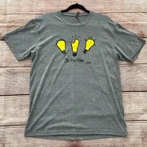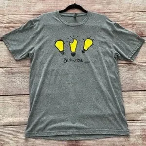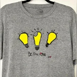 Nearly New! ✨ Grace’s OG ‘Be The Light’ Tee from Candidly Kind, unisex size Large! Embrace positivity with this stylish gray tee featuring a bold yellow light bulb design created by Grace!