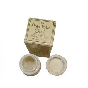 Vintage Avon White Owl Moonwind Cream Sachet Milk Glass