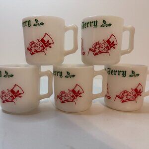 5 Pc Set Vintage Hazel Atlas Tom and Jerry 4oz Egg Nogg Mugs No Chips No Cracks