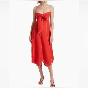 Farm Rio Bow Scalloped Linen Midi Dress, MED NWT