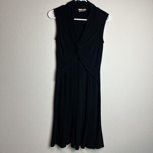 Joseph Ribkoff Dress Womens 10 Black Jersey V Neck Knot Fit & Flare Knee Length