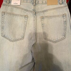 Stylish straight leg jeans. Light blue color. Perfect for casual wear.