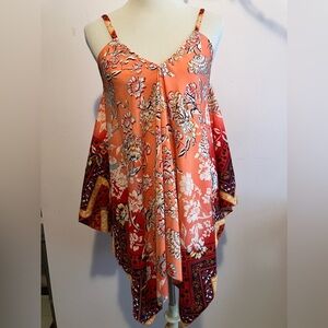Women’s Pullover/Handkerchief/Tank Top, L, Floral, Orange/Red, Unique Spectrum