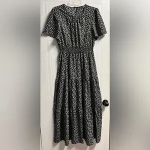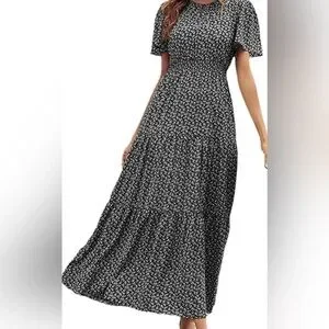 Step out in style with this elegant black floral maxi dress. Perfect for any occasion, this dress offers a flattering fit and timeless design.