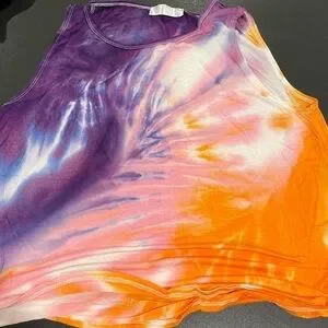 Tie-dye tank sleeveless sunset colors gravity dye 1X rayon pink orange