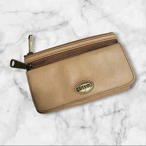 Fossil Explorer Wallet Leather Tan Zip Vintage Y2K
