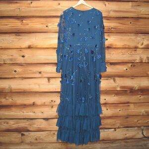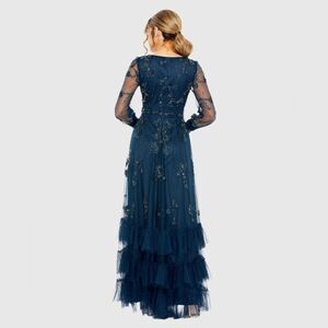 MAC DUGGAL 9256 Womens Mesh Long Sleeve V-Neck Tiered A Line Gown