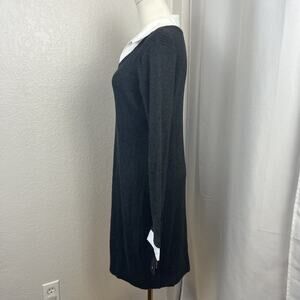 Layered V-Neck Sweater Dress Womens XL Grey Fitted Ribbed Preppy Old Money Chic