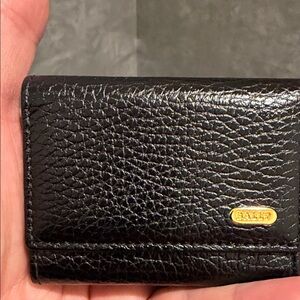 Bally Textured Black Card Holder with Gold Detail Made in Italy