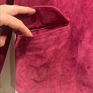 Chadwicks brings us a real Y2K suede leather blazer jacket that's fun and sophisticated at the same time. It has 2 buttons in front, satin lining and 2 true pockets that bring it all together. EXCELLENT condition. Wine. Size 16