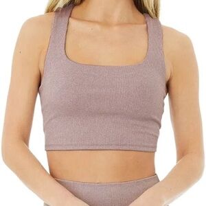 Alo Alosoft Ribbed Chic Bra Tank in Lavender Dusk Heather XS