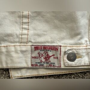 Classic True Religion trucker-style denim jacket featuring signature contrast stitching and iconic horseshoe details. Designed with a structured yet comfortable fit, this jacket is made from soft stretch denim and finished with Sahara hardware for a premium look. Traditionally men’s, but can absolutely be worn unisex depending on preferred fit.