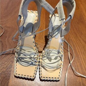 Chic heels with intricate straps. Stylish and modern design purchased from versitaire never worn I purchased used I would like to get rid of them