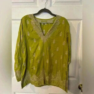Sigrid Olsen Signature Chartreuse Green Embroidered Tunic Cotton Blouse Small