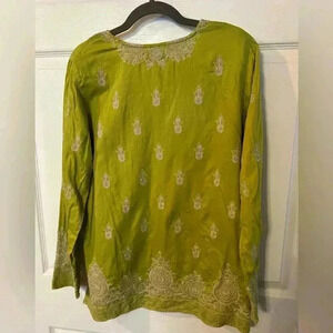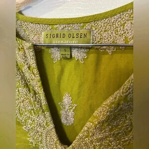 Sigrid Olsen Signature Chartreuse Green Embroidered Tunic Blouse Womens Size Small GUC