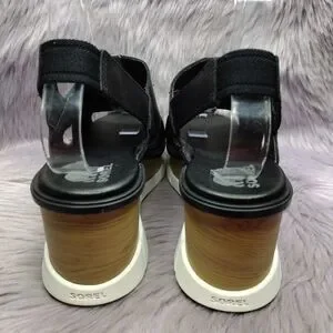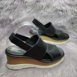 Sorel Joanie III Leather Slingback Open Toe Platform Sandals Women Size 10 Black